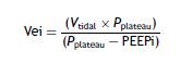 La única medida de la que se ha demostrado que predice las complicaciones de la hiperinsuflación es la determinación del volumen teleinspiratorio (Vei) sobre la capacidad residual funcional, calculando el volumen total de gas exhalado en un paciente en parálisis muscular tras 60 s de apnea24. Un Vei > 20 ml/kg se considera predictivo de complicaciones como hipotensión y barotrauma. Asumiendo que la compliance del sistema respiratorio se mantiene constante, el Vei podría calcularse mediante la siguiente fórmula, si bien todavía no se ha validado: