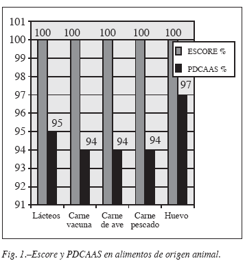 En la práctica nutricional no se dispone de información recopilada y actualizada con respecto a los valores de escore y PDCAAS de los alimentos habitualmente utilizados en los planes de alimentación. Los datos disponibles de escore en su mayoría se basan en la comparación con la proteína del huevo y resultan por lo tanto inferiores a los calculados según el patrón de aminoácidos esenciales propuesto por la FAO en 85 y por la Academia Nacional de Ciencias en 2002. Consideramos que la realización de esta investigación, que se llevó a cabo con la finalidad de calcular el PDCAAS en varios alimentos, resulta de utilidad para precisar el cálculo de la dosis inocua de proteínas dietéticas en situaciones biológicas especiales como embarazo, lactancia, preescolares, vegetarianos, nefropatías y para la realización de mezclas de proteínas en las que se busque aumentar la calidad de alguna de las mismas13-16.