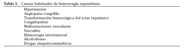 La angiopatía cerebral amiloidea constituye otra importante causa de HIC relacionada con el depósito de material amiloide en los vasos leptomeníngeos y corticales, y adquiere cada vez mayor importancia. En España, la forma esporádica de esta angiopatía cerebral es causa de más del 10% de las HIC en el anciano. Este tipo de hemorragias se localizan a nivel subcortical, son frecuentemente recidivantes y múltiples, y aparecen fundamentalmente en ancianos. Otras causas menos frecuentes de HIC son las malformaciones arteriovenosas (MAV), los aneurismas, algunos tumores intracraneales y las vasculitis. Otro factor de riesgo importante de HIC es el alcohol, que actúa de manera dosis-dependiente, en probable relación con su asociación con la HTA y coagulopatía por afectación hepática. Las coagulopatías congénitas como la hemofilia, o adquiridas, como la púrpura trombocitopénica idiopática son causa del 6-20% de las HIC. También es causa de HIC la administración de fármacos antitrombóticos, especialmente los anticoagulantes orales y los fibrinolíticos. Los antiagregantes plaquetarios también se asocian con una mayor tendencia a originar HIC.
