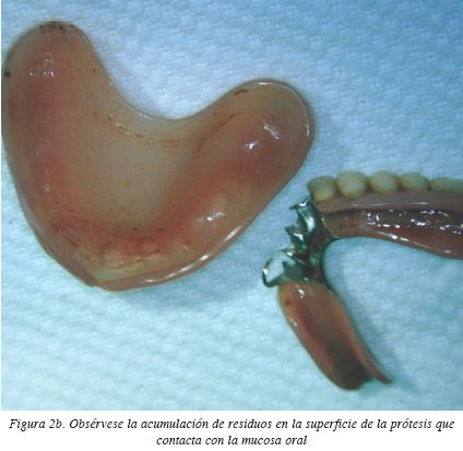 La estomatitis protésica aparece más frecuentemente en portadores de prótesis con mala higiene oral. La presencia de placa bacteriana favorece la colonización por parte de Candidas tanto en la superficie de las prótesis como en la mucosa. Kulak estudió la relación entre la estomatitis protésica y la higiene oral9*; monitorizó en 70 pacientes portadores de prótesis completas la presencia de estomatitis, la presencia de hongos, el método y la frecuencia de limpieza de la prótesis y el estado de la misma. Concluyó que no había relación directa entre el método de limpieza y frecuencia de lavado de la prótesis con la aparición de la enfermedad; sin embargo, sí había relación significativa entre la presencia de suciedad, la colonización de prótesis y mucosa por levaduras y la presencia de estomatitis protésica. El autor deduce, pues, que no importa el método ni frecuencia de limpieza mientras la prótesis se mantenga limpia.