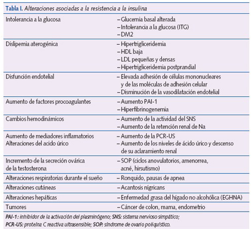 Se han descrito multitud de alteraciones asociadas a la RI (tabla I).